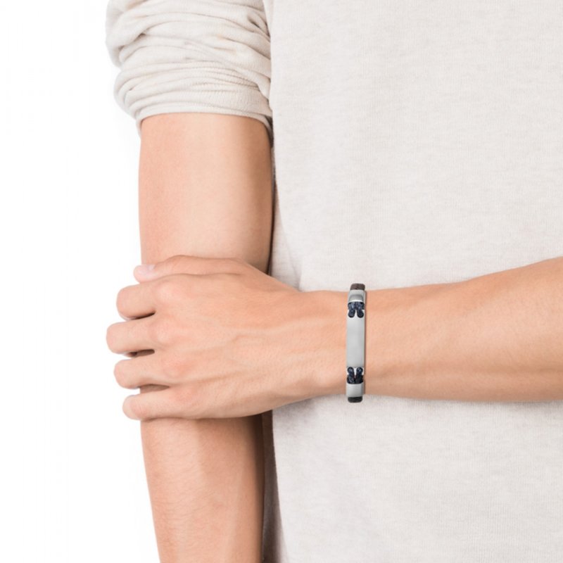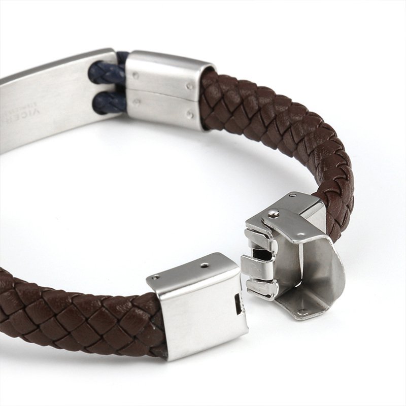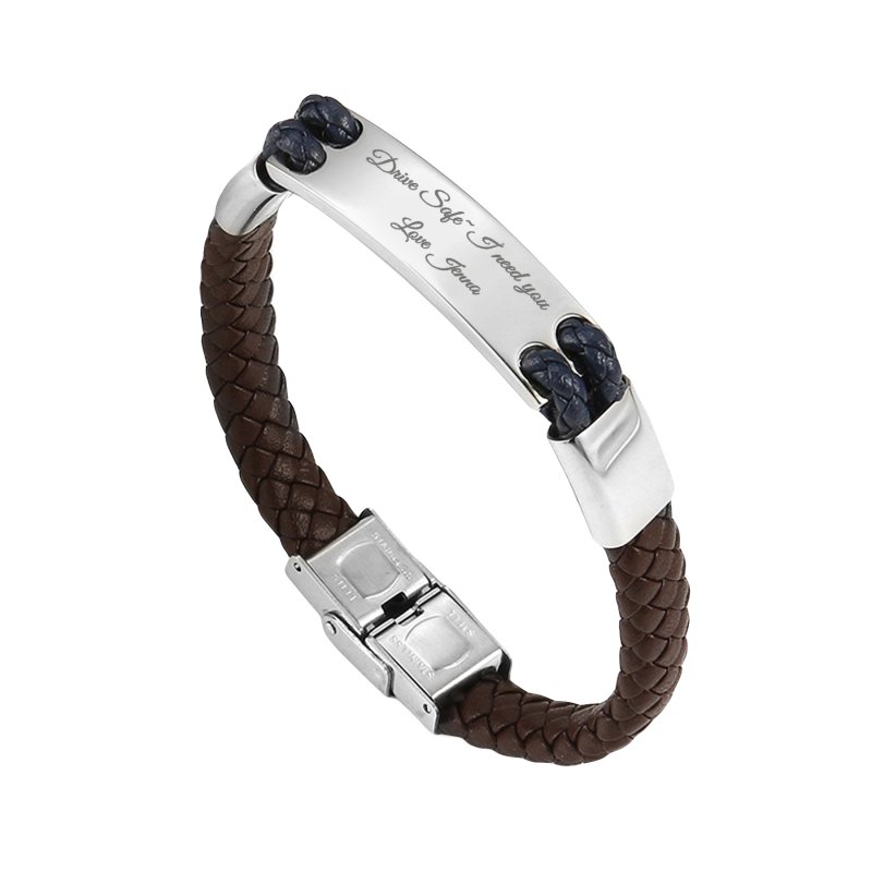 Qina C. Personalized Valentine's Gift for Him - Engraved Leather Bracelet with Initial, Custom Name Stainless Steel Wristband for Husband, Boyfriend, Fiancé